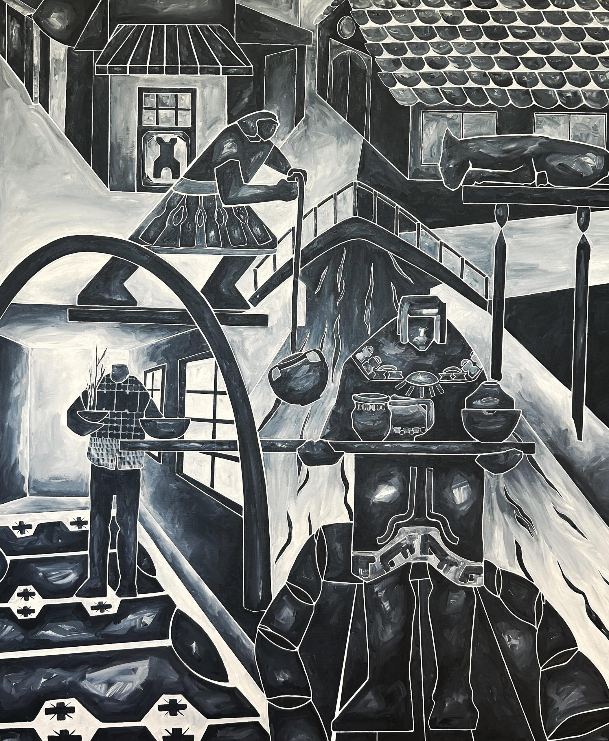 Sanatçının üretiminde farklı yönelimlerin izini süren sergi, bir yanda toplumsal birliktelik, emeğin döngüsü ve kolektif yaşam tahayyülleriyle kurulan sahneler; diğer yanda yaşamın sürdürülmesi, aidiyet ve koruma gibi evrensel anlamlar taşıyan kavramlara odaklanan kompozisyonları bir araya getiriyor. Bu karşılaşma, kitlesel birliktelikten çekirdek aileye kadar toplumun her katmanında var olan emek, üretkenlik ve verimlilik kavramlarını, sanatçının kendine özgü üslubuyla harmanlıyor.